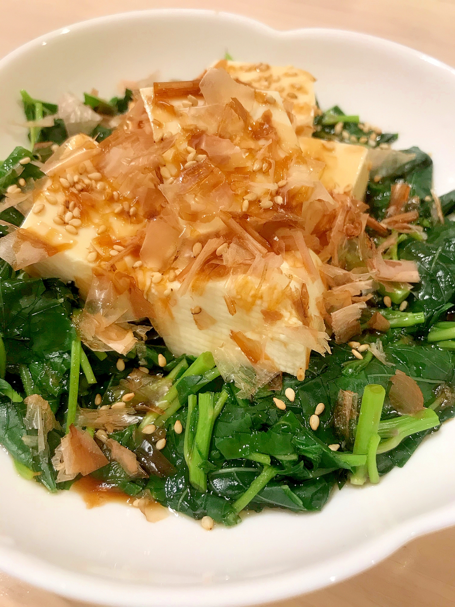 レシピタイトル:★あともう一品★モロヘイヤと豆腐のお浸し