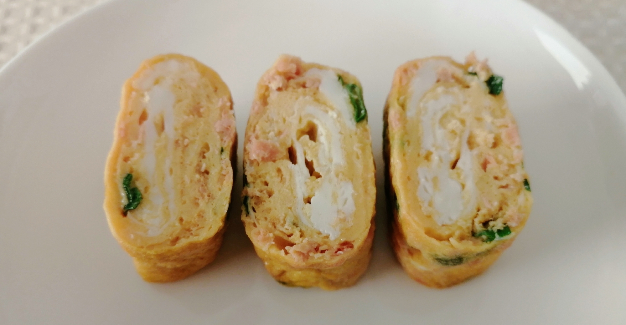 レシピタイトル:鮭フレークと小ねぎの卵焼き