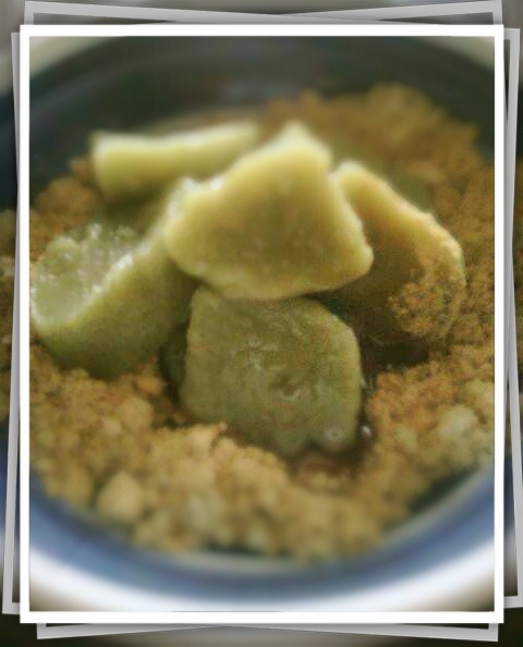 レシピタイトル:小麦粉で作る 抹茶味のくずもち風和菓子
