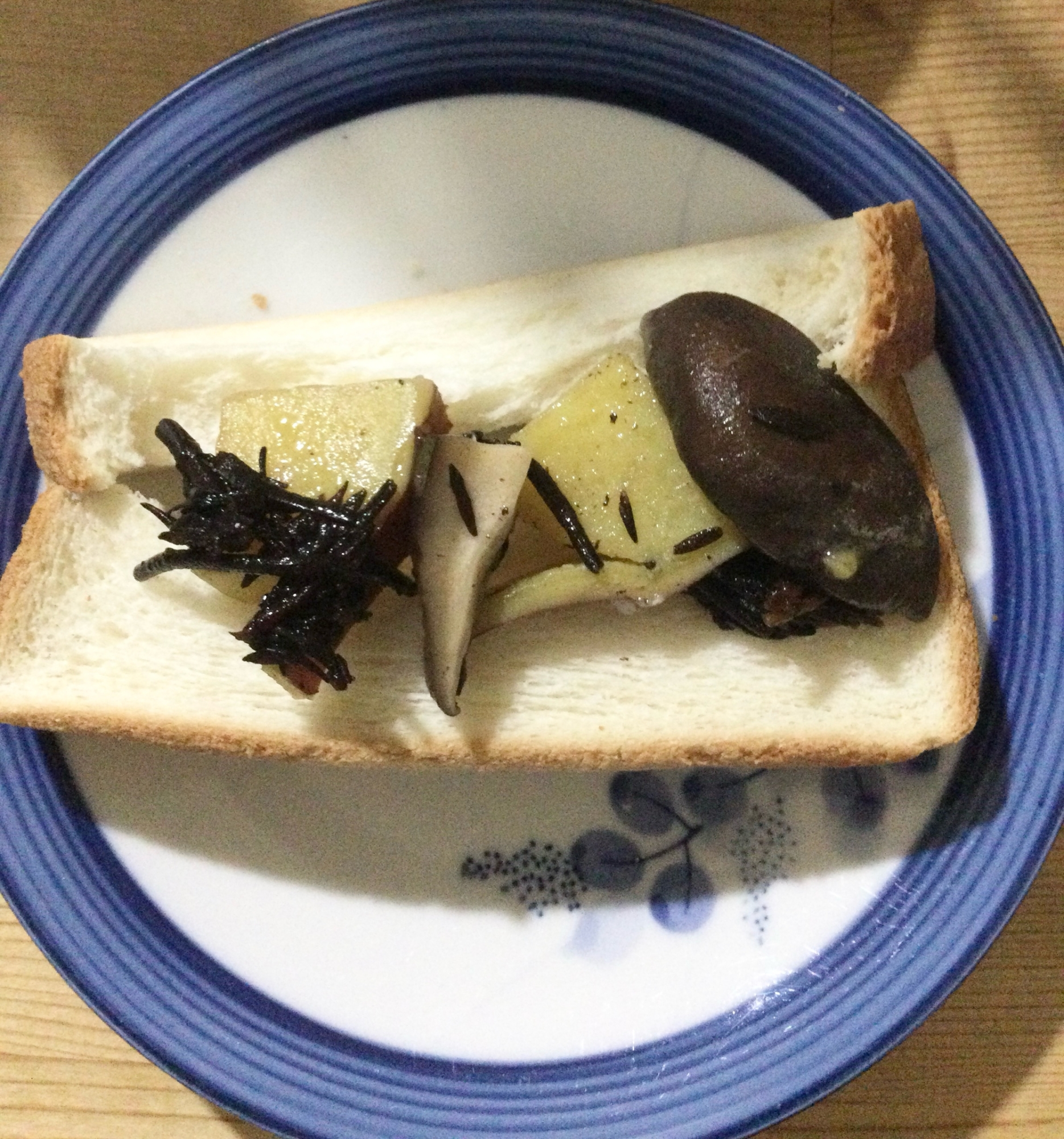 レシピタイトル:☆さつまいもしいたけひじきオープンサンド☆