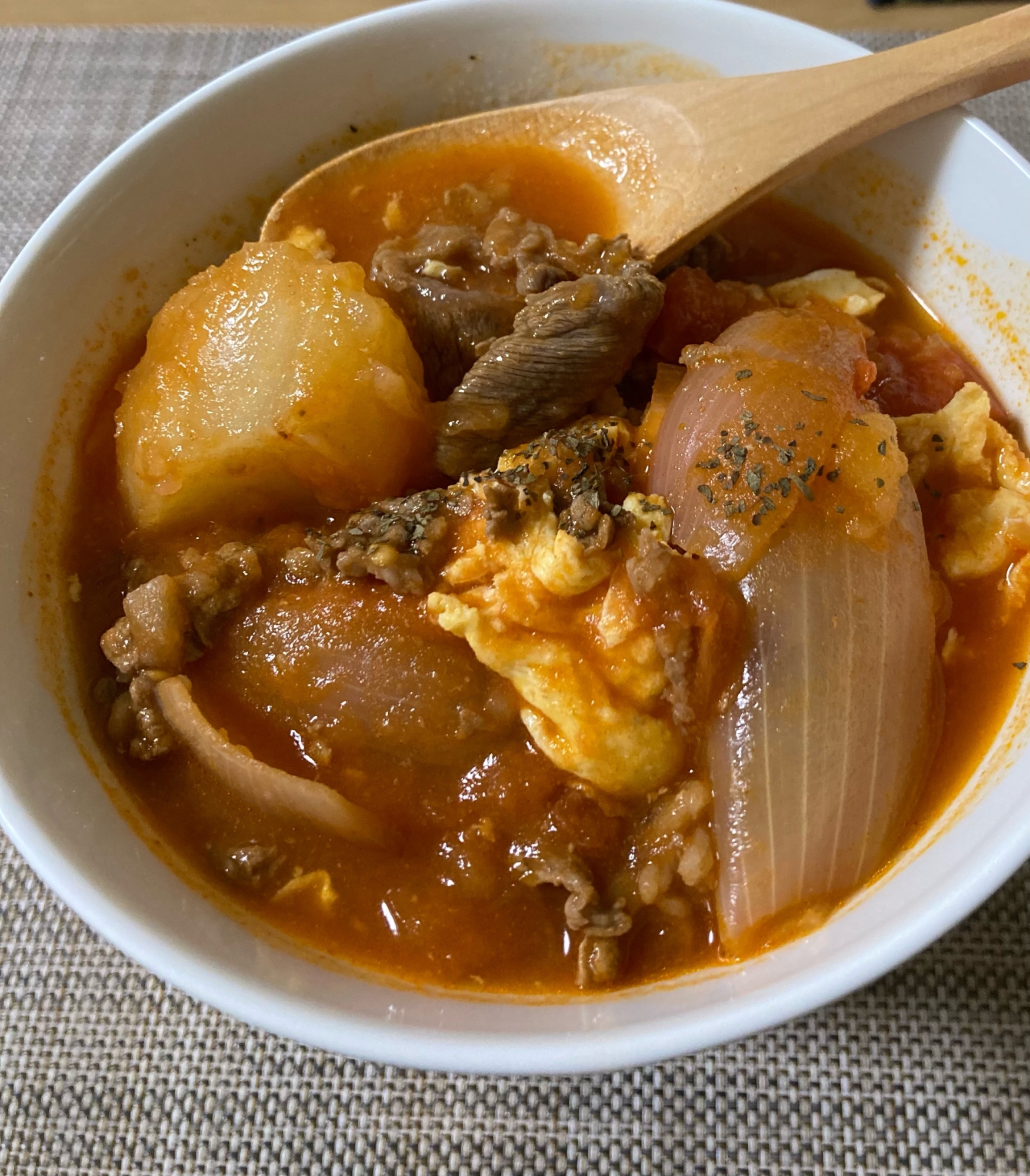 レシピタイトル:【2度美味しい】牛肉とトマト達の温スープ