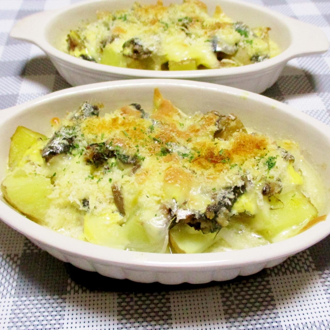 :うまっ!新じゃがとオイルサーディンの簡単グラタン