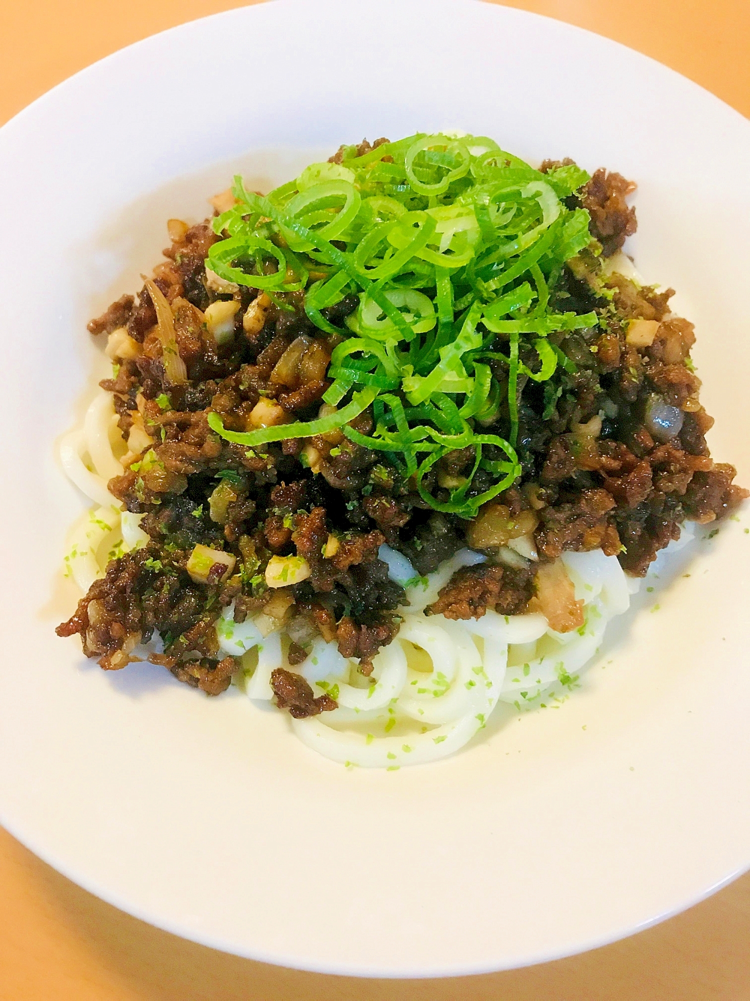 レシピタイトル:合い挽き肉&玉ネギの肉味噌うどん