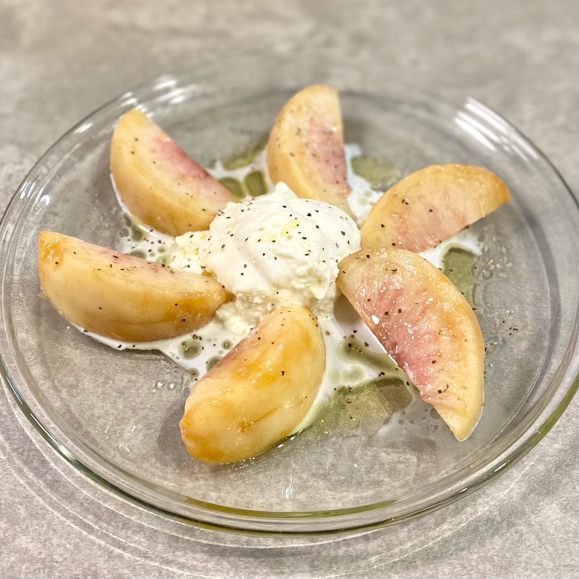 レシピタイトル:家にある調味料で♪桃ブッラータ