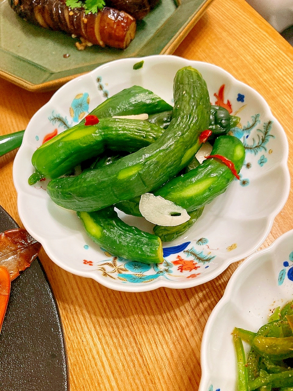レシピタイトル:お酒が進む!きゅうりのピリ辛浅漬け