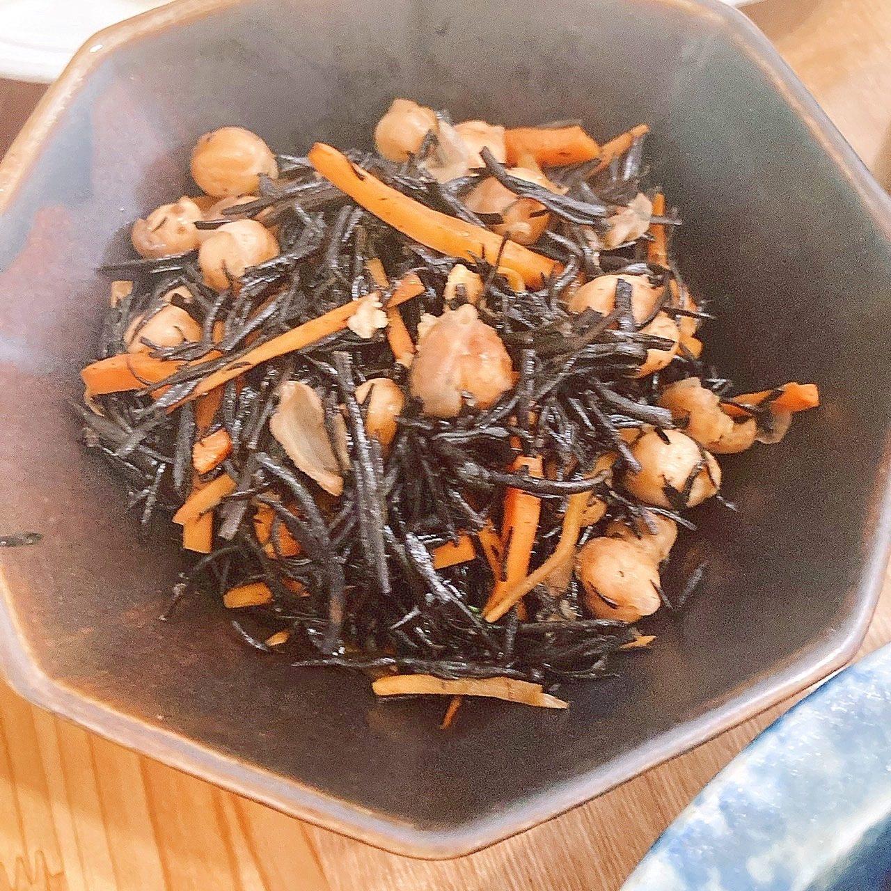 レシピを考えた人のコメント:いつものひじきの煮物を洋風にアレンジ♪ひよこ豆を加えておしゃれ感UP!