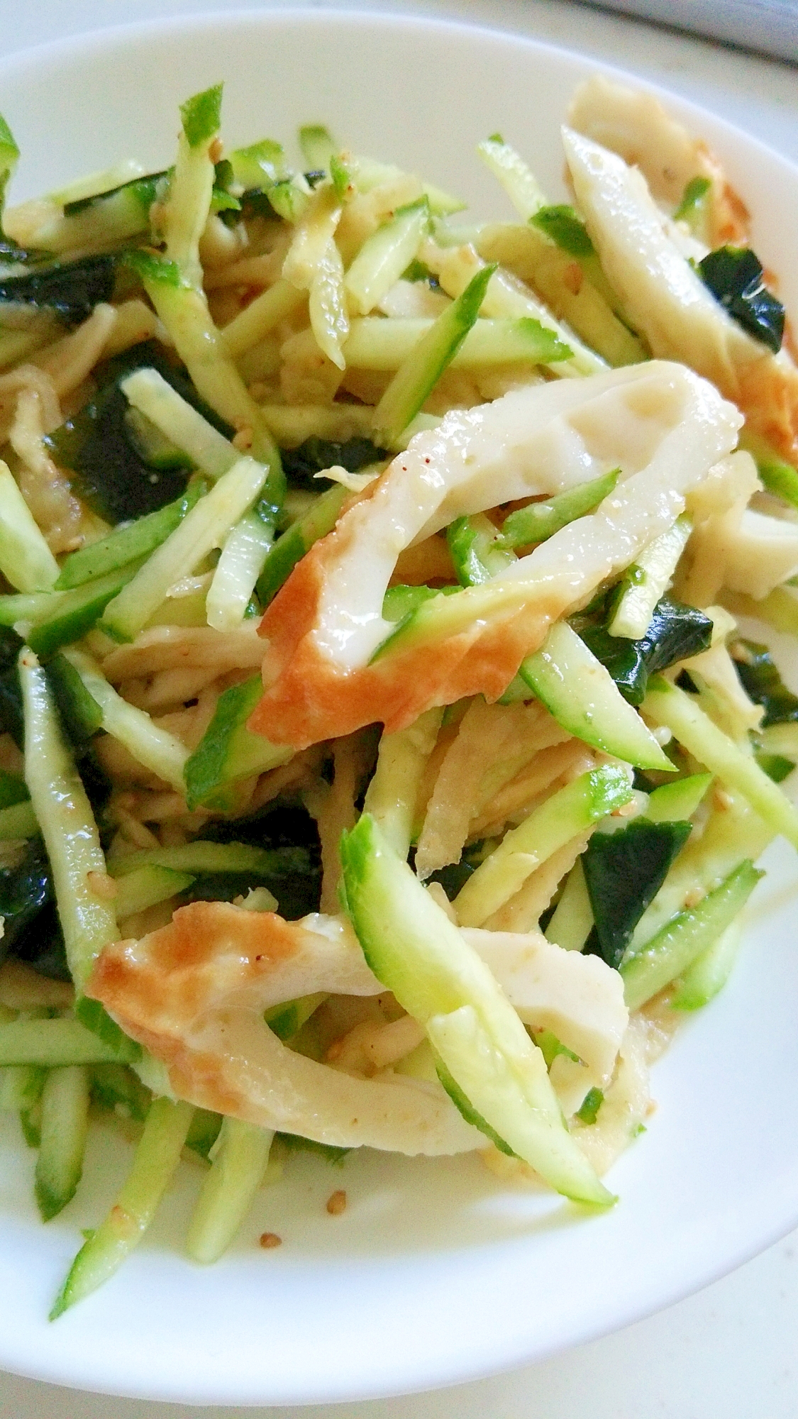 切干大根とわかめときゅうりとちくわの中華風サラダ