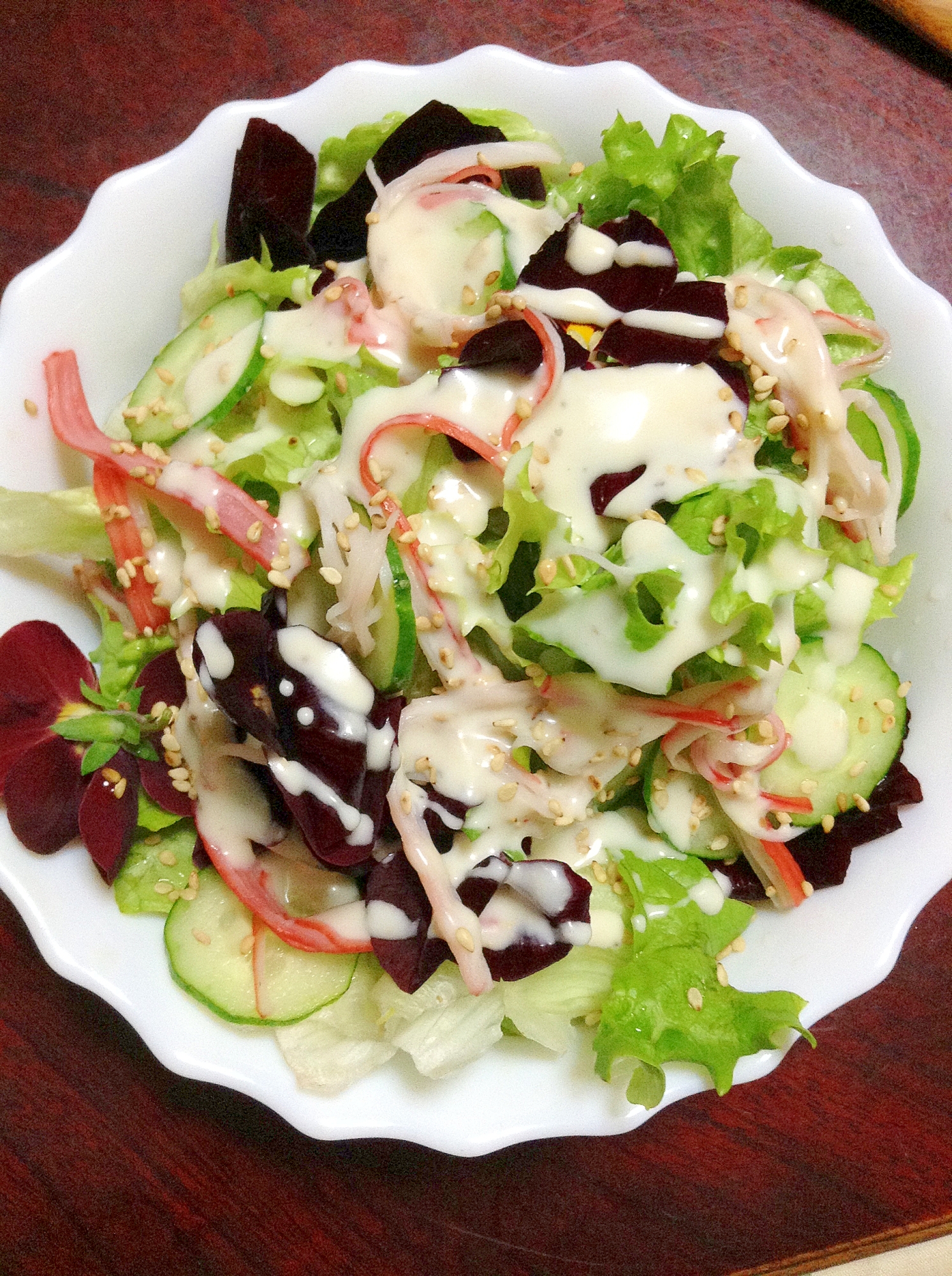 :【食べられる花レシピ】カニカマ☆シーザーサラダ