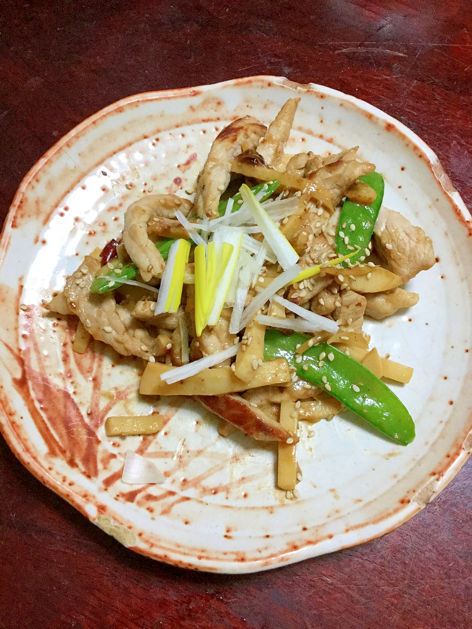 豚とタケノコと絹さやのオイスターソース炒め!
