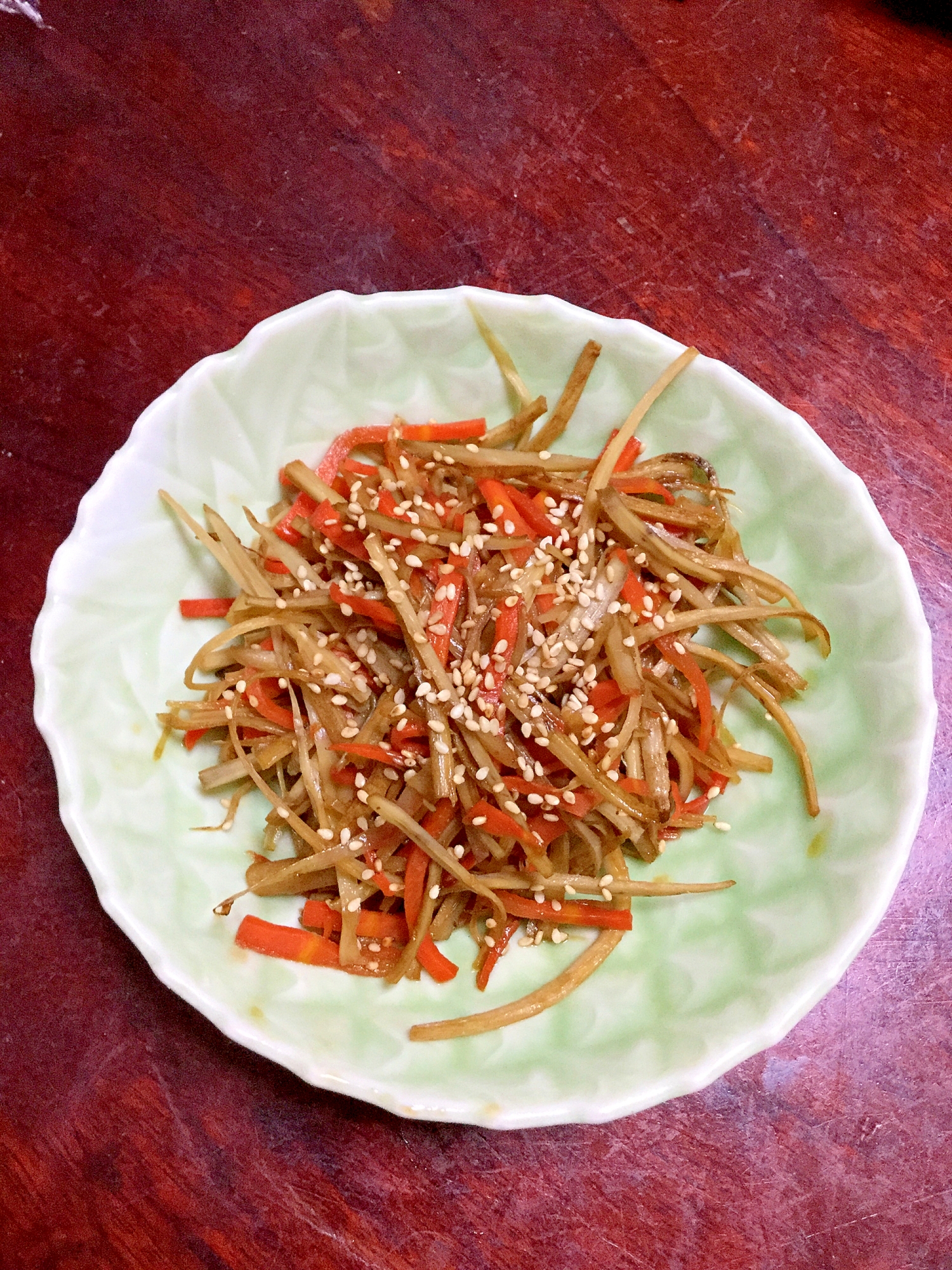 レシピタイトル:すき焼きのタレdeウドと人参のキンピラ!