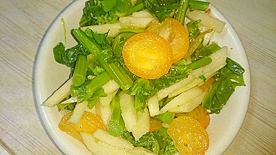 菜の花・金柑・りんごのレモンオリーブサラダ