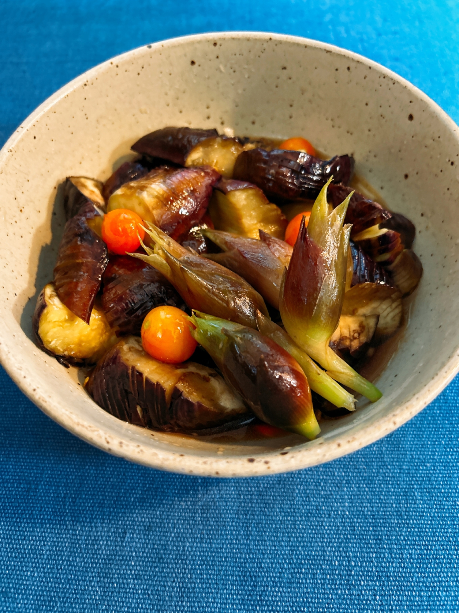 レシピタイトル:なすと 秋みょうがの焼き浸し