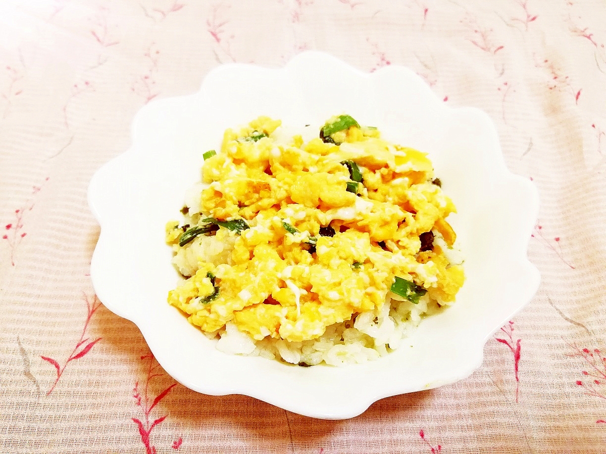 レシピタイトル:柑橘風味♪ニラのスクランブルエッグ