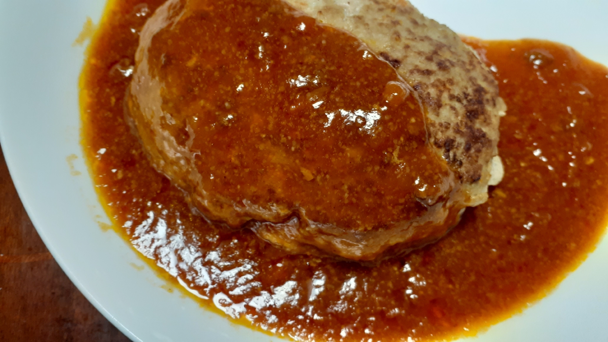 :人参入りハンバーグ洋食店風ソースがけ♪