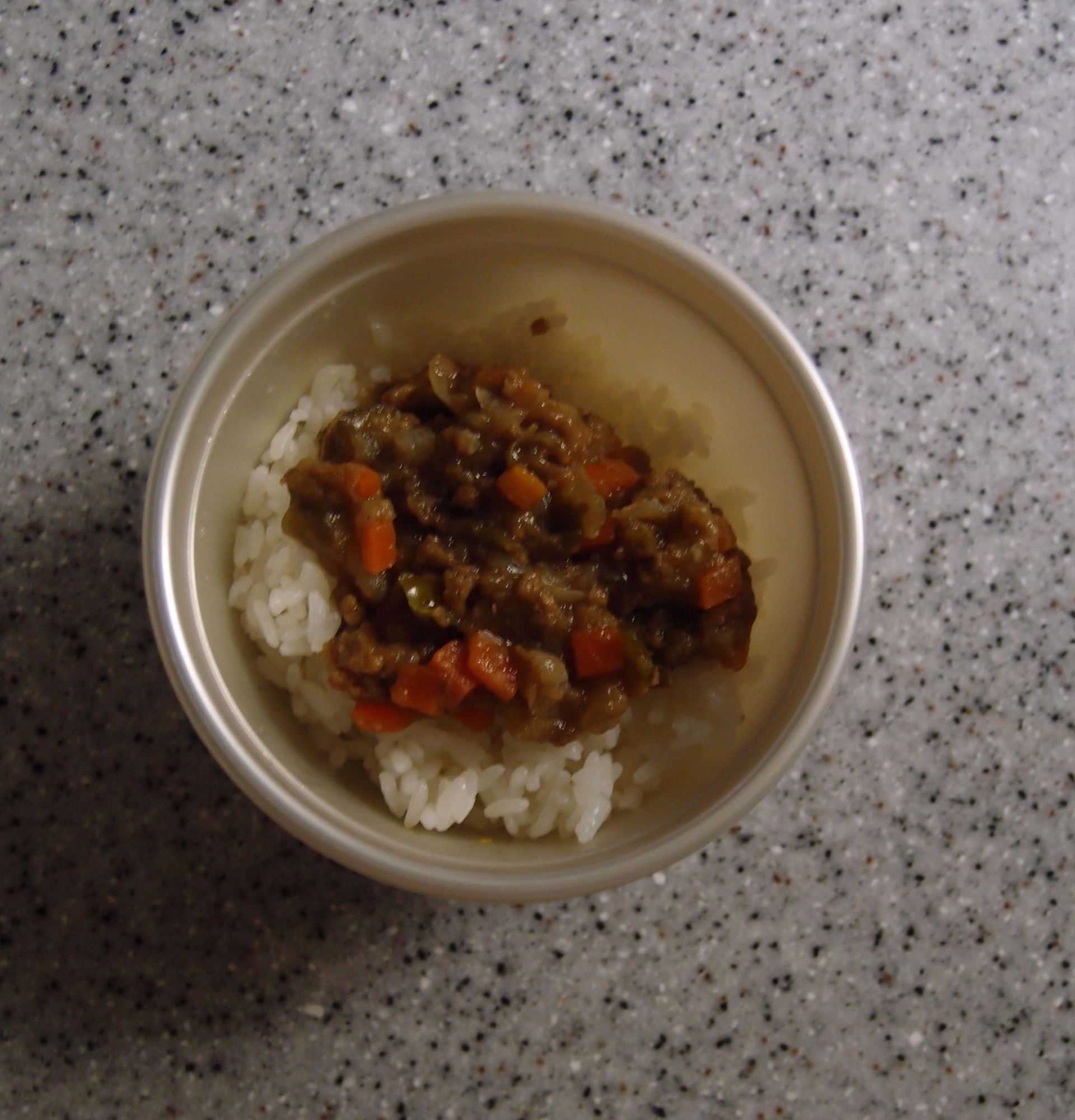レシピを考えた人のコメント:ミンチと人参の味噌炒めのっけご飯