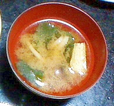 レシピを考えた人のコメント:小松菜としめじと油揚げを入れた味噌汁です。