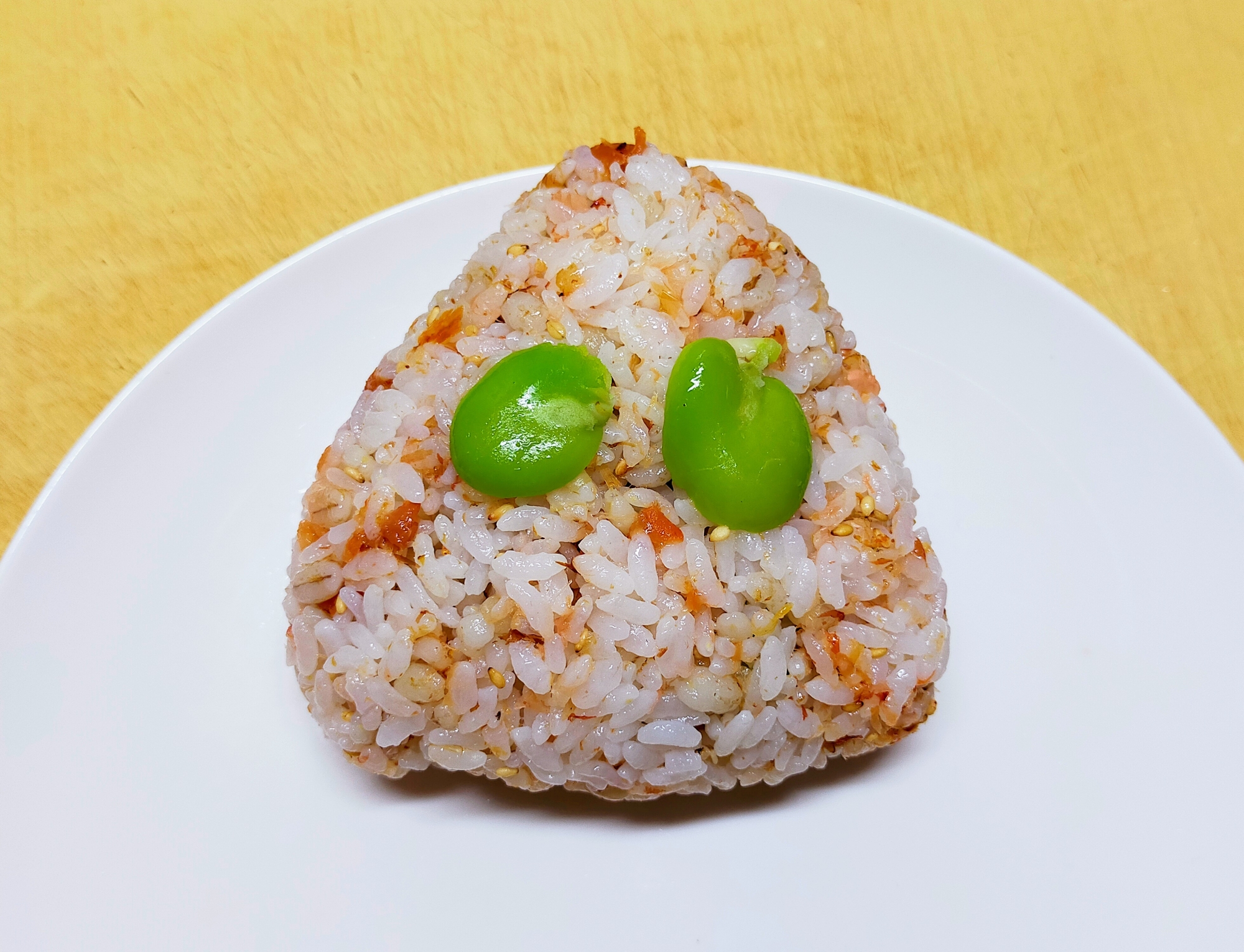 レシピタイトル:そら豆・梅・おかか・ごまのおにぎり