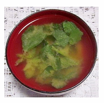レシピタイトル:ラディッシュ葉の味噌汁(昆布だし)
