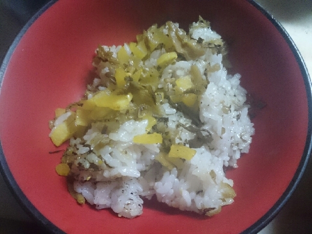 レシピを考えた人のコメント:たくあんと高菜の炒めご飯です♪