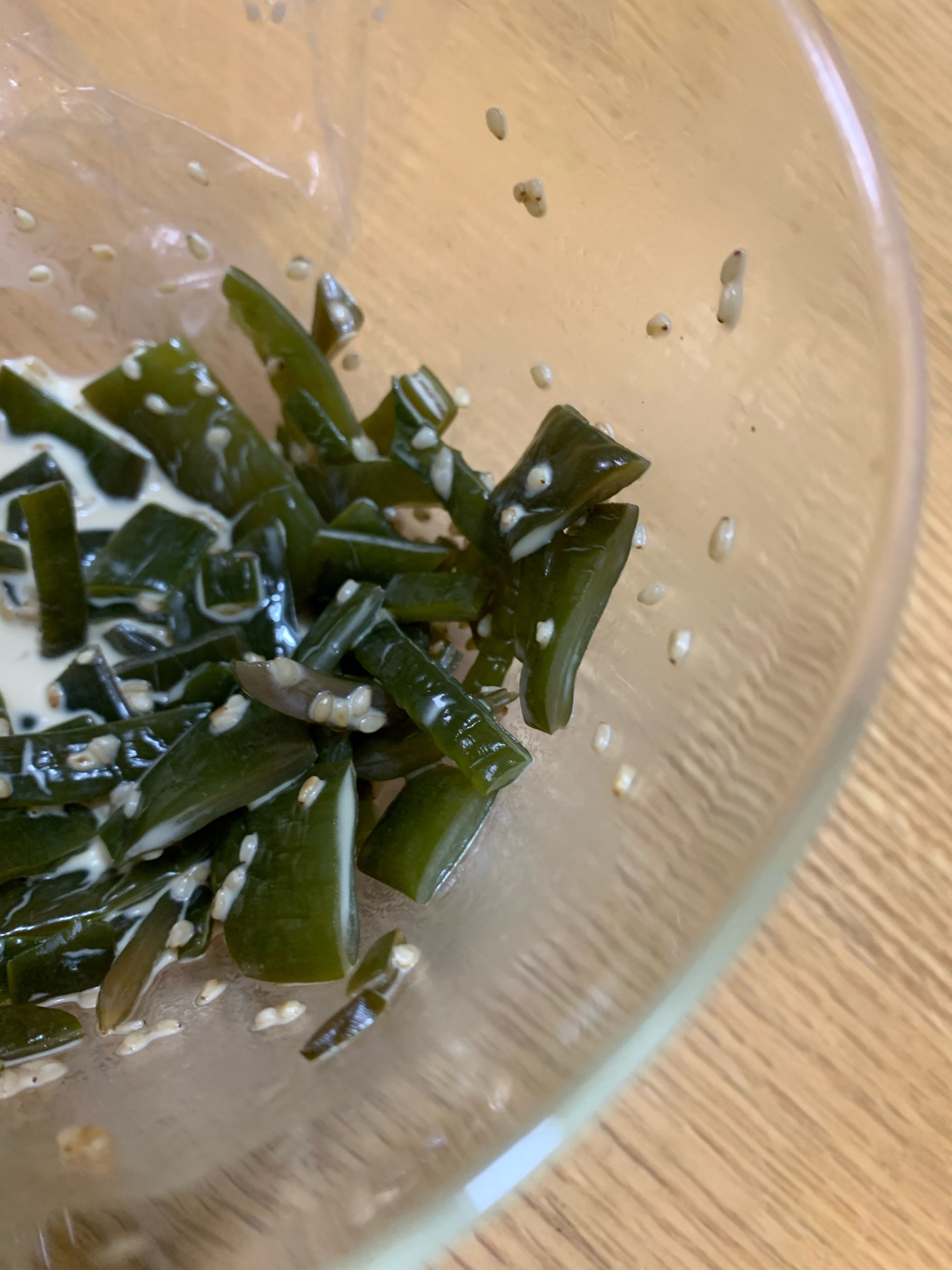 レシピタイトル:茎わかめの、中華風サラダ
