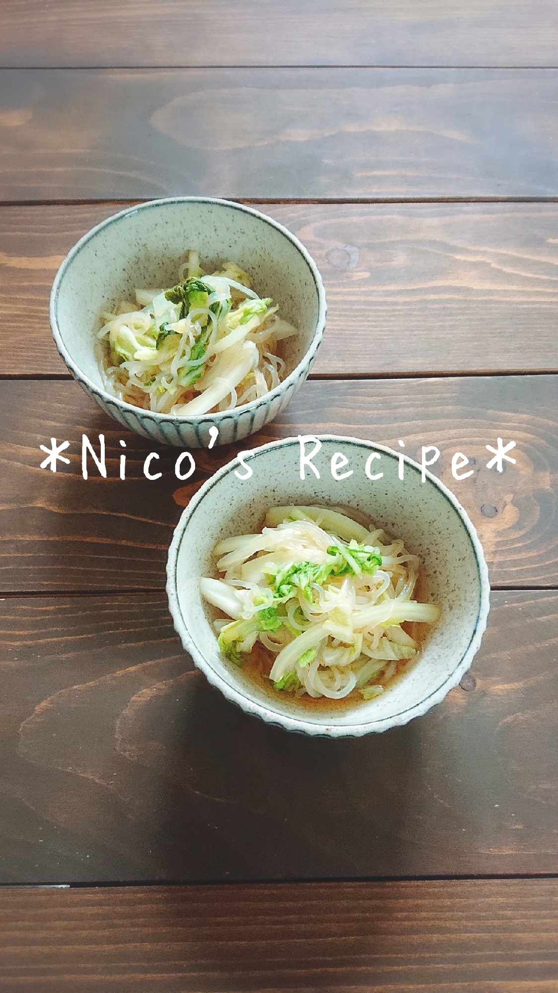 レシピタイトル:レンジで♪白菜と白滝の生姜お浸し