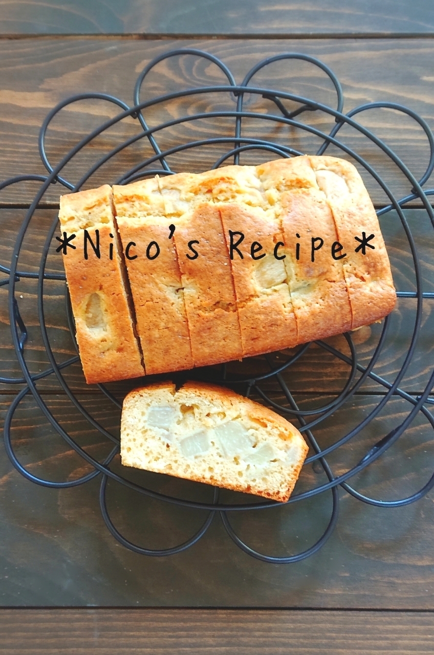 レシピタイトル:ホットケーキミックスと桃の缶詰のパウンドケーキ