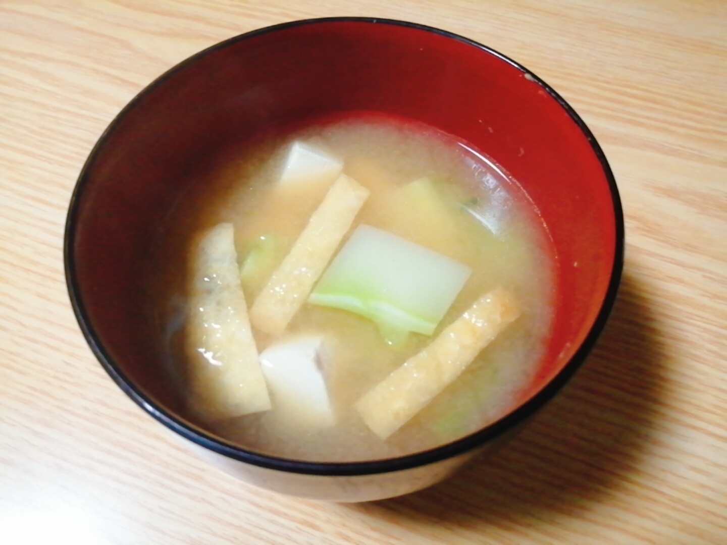 豆腐とブロッコリーの茎と油揚げの味噌汁