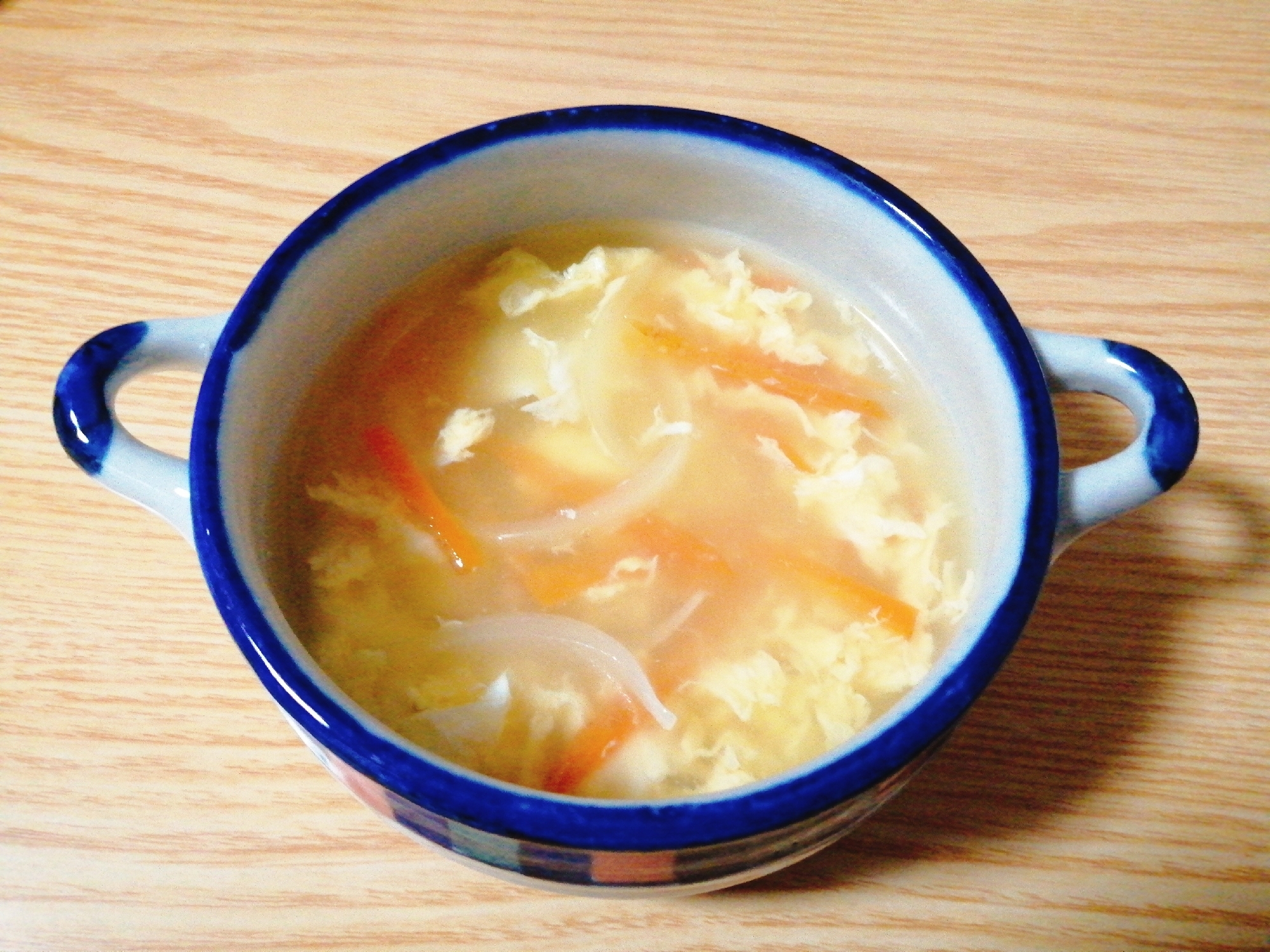 レシピタイトル:卵と人参と玉ねぎのスープ