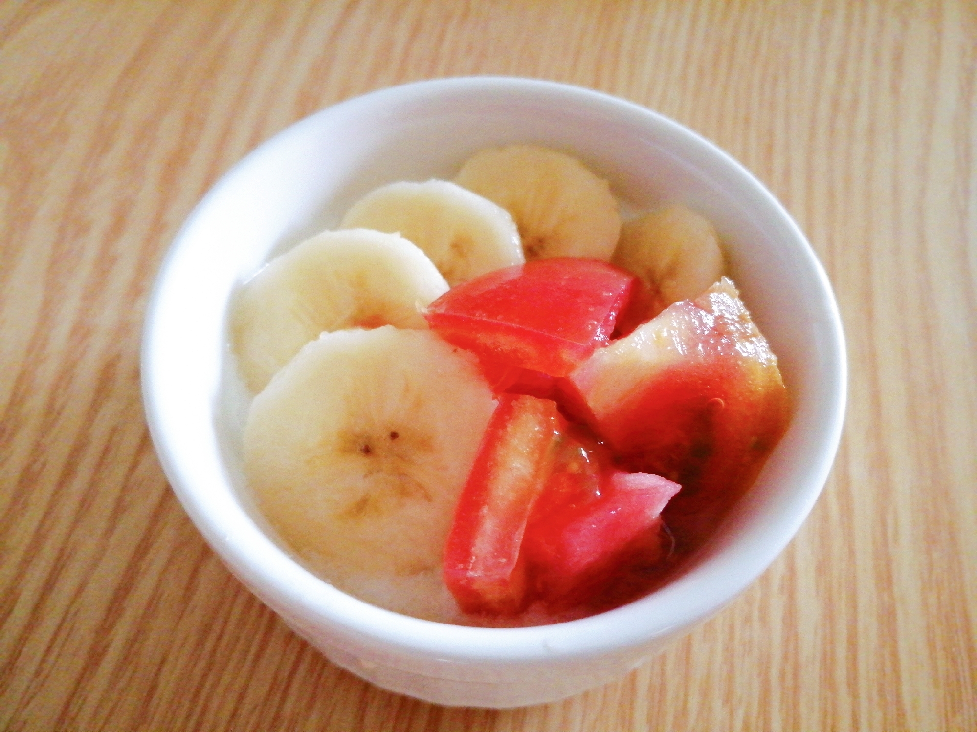 レシピを考えた人のコメント:ヨーグルトにバナナとトマトをトッピングしました♪