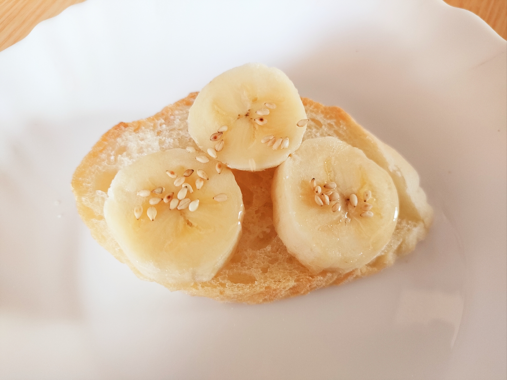 レシピタイトル:バナナとごまのトースト〜蜂蜜レモン風味