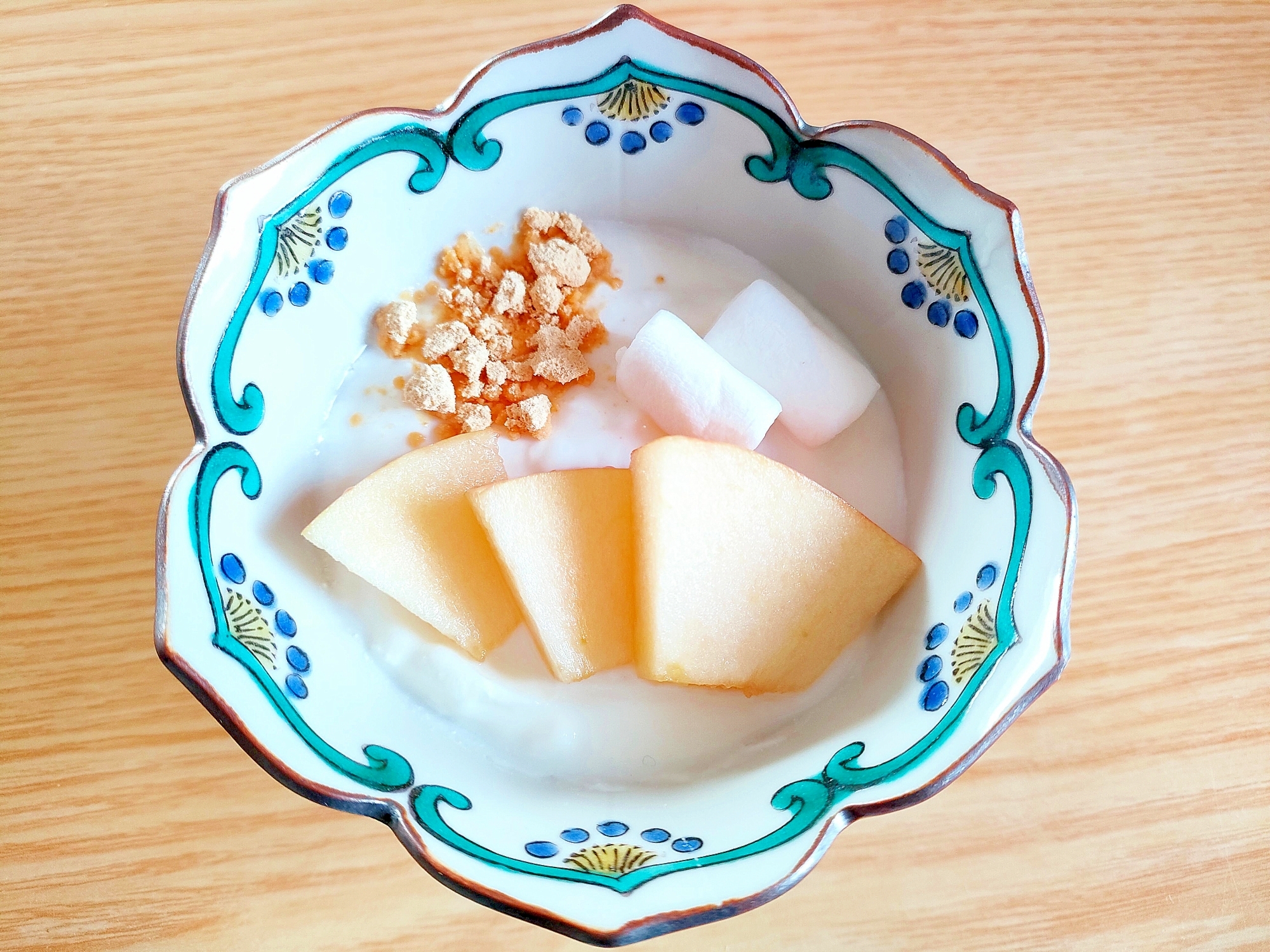 りんごとマシュマロときな粉のヨーグルト