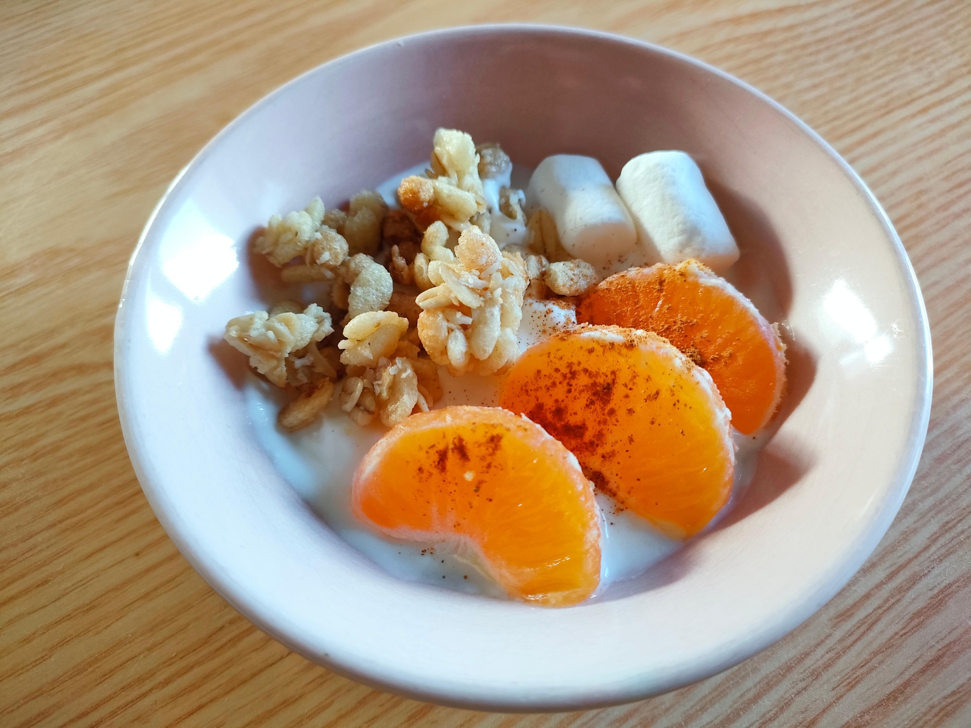 レシピタイトル:みかんとグラノーラとマシュマロのヨーグルト