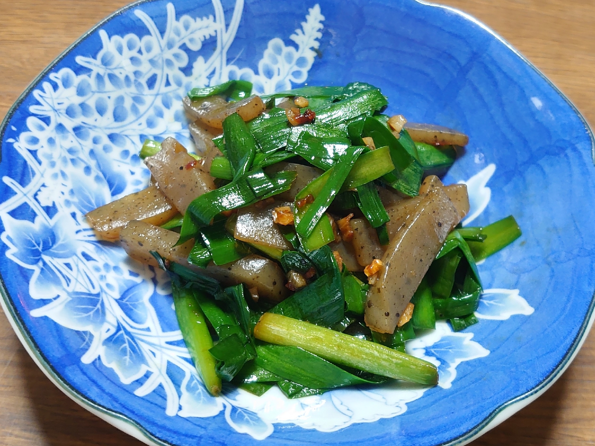レシピタイトル:ニラとこんにゃくのピリ辛炒め