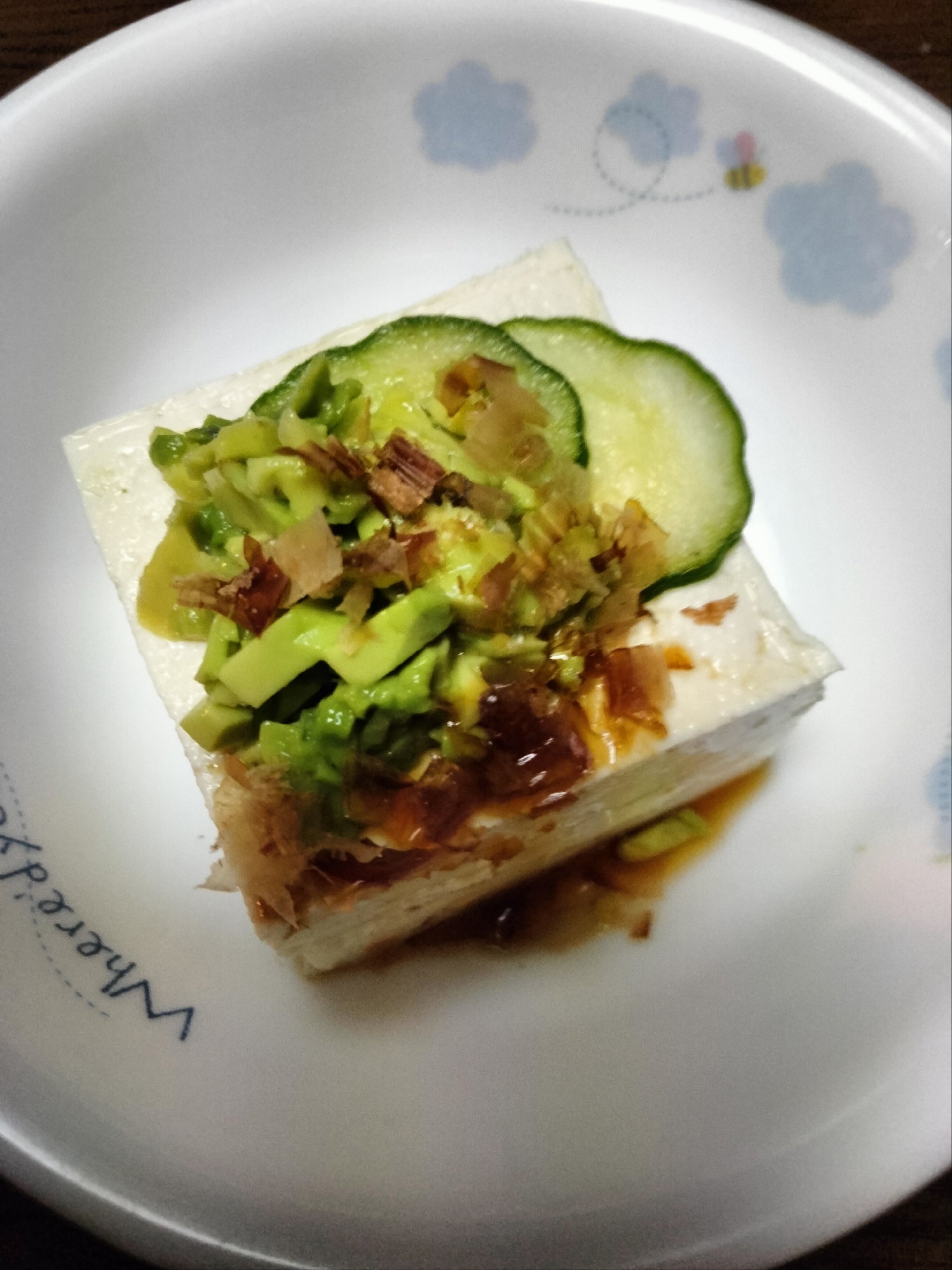 冷奴アレンジ きゅうり&アボカドのせて