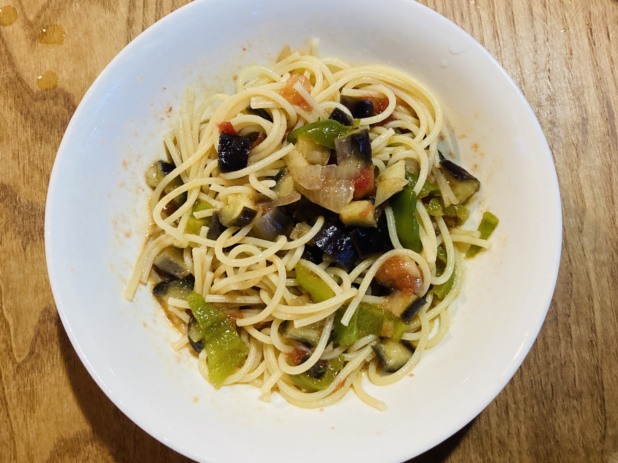 レシピタイトル:夏野菜たっぷり冷製パスタ