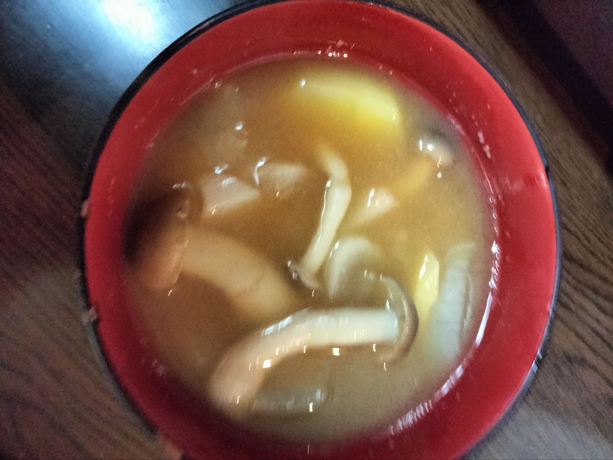 レシピタイトル:じゃが芋しめじ玉ねぎの味噌汁