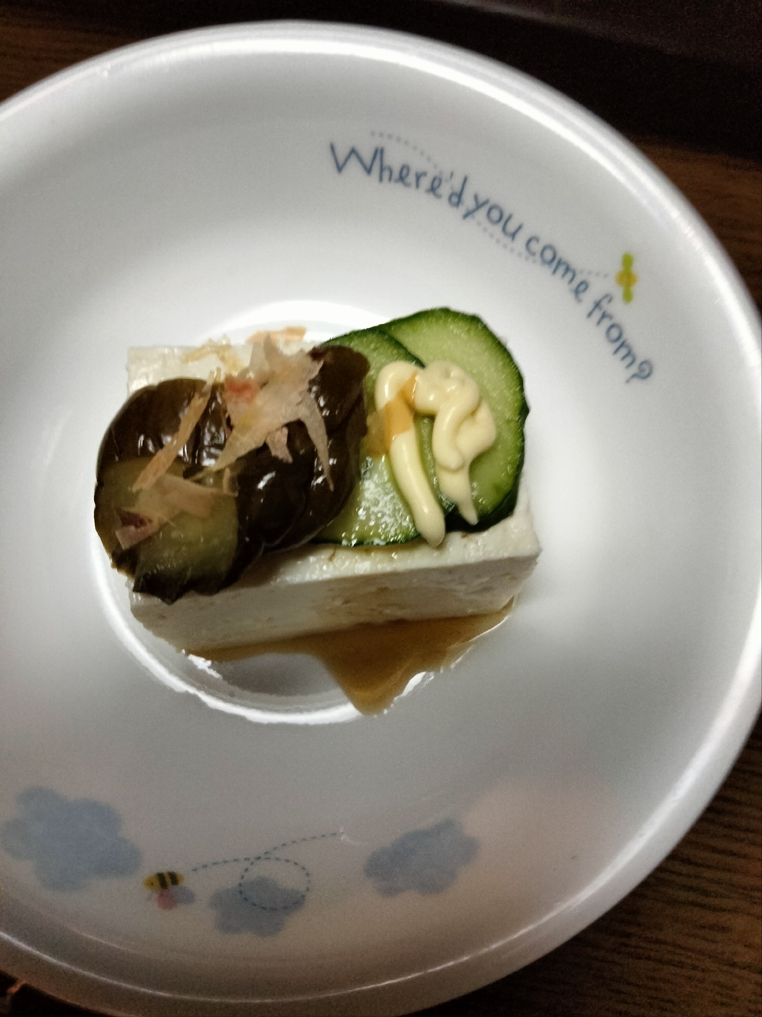 レシピタイトル:冷奴アレンジ きゅうり&しば漬け