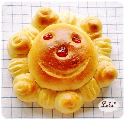 :大好きな絵本「おひさまパン」に掲載されているレシピを参考にオリジナル配合で作った、おひさまパン。リッチな生地は ふわんふわんで栄養満点♪