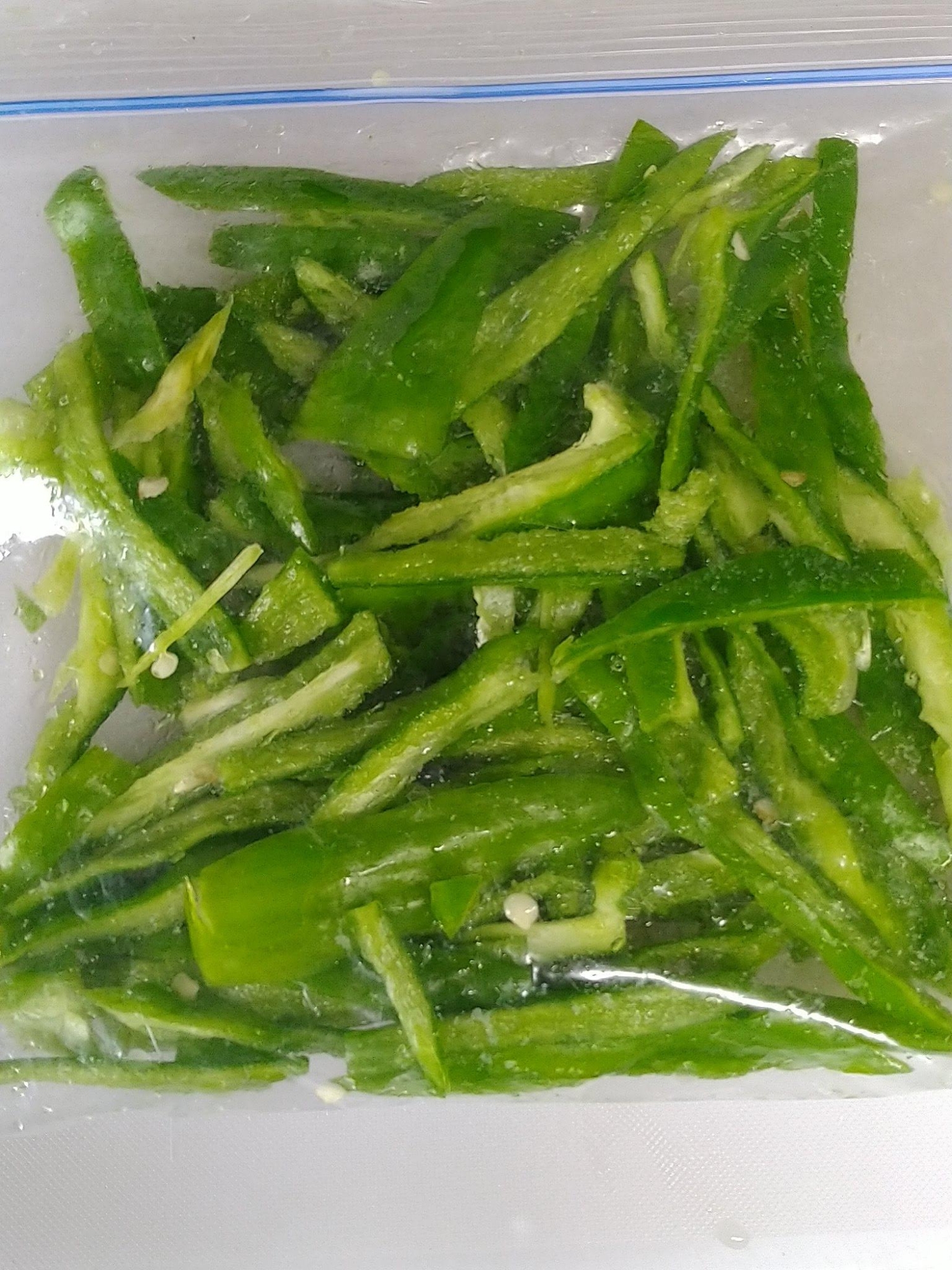 :ピーマンがたくさん収穫できた時は冷凍保存してます。切るとき種が飛び散るのでキッチンバサミを使うと便利です。