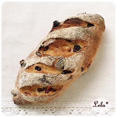 :ライ麦入りの生地にラム酒漬けの2種類のレーズンとクランベリーをたっぷり混ぜ込み、ダイス状のクリームチーズを生地に散りばめて焼き上げました。