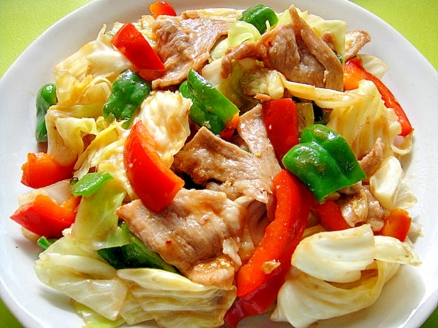 キャベツと豚肉パプリカのにんにく生姜炒め