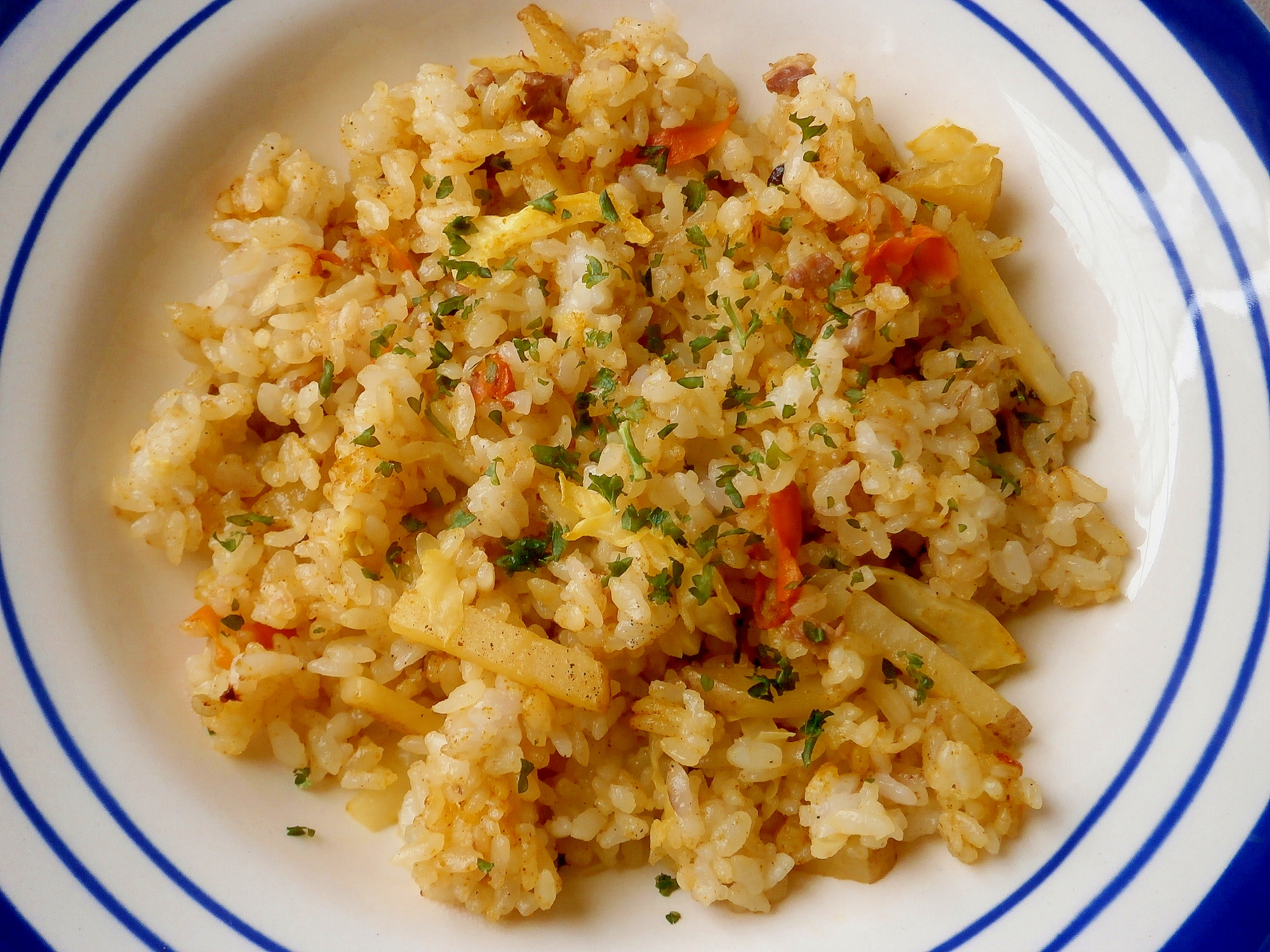 レシピタイトル:じゃがいも入り☆カレーピラフ