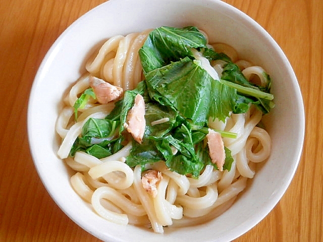 レシピタイトル:レンジめし★鱒と青菜のうどん
