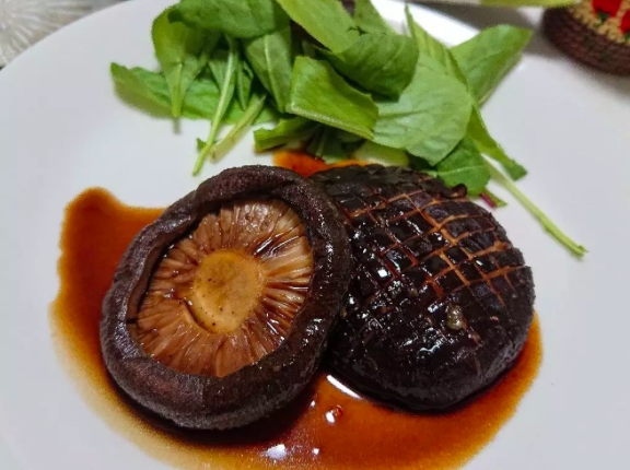 :傘の大きな椎茸をまるごとソテーしてステーキ風に仕上げました!ソースもフレンチ仕立てにしてあるので濃厚で絶品です(^^)