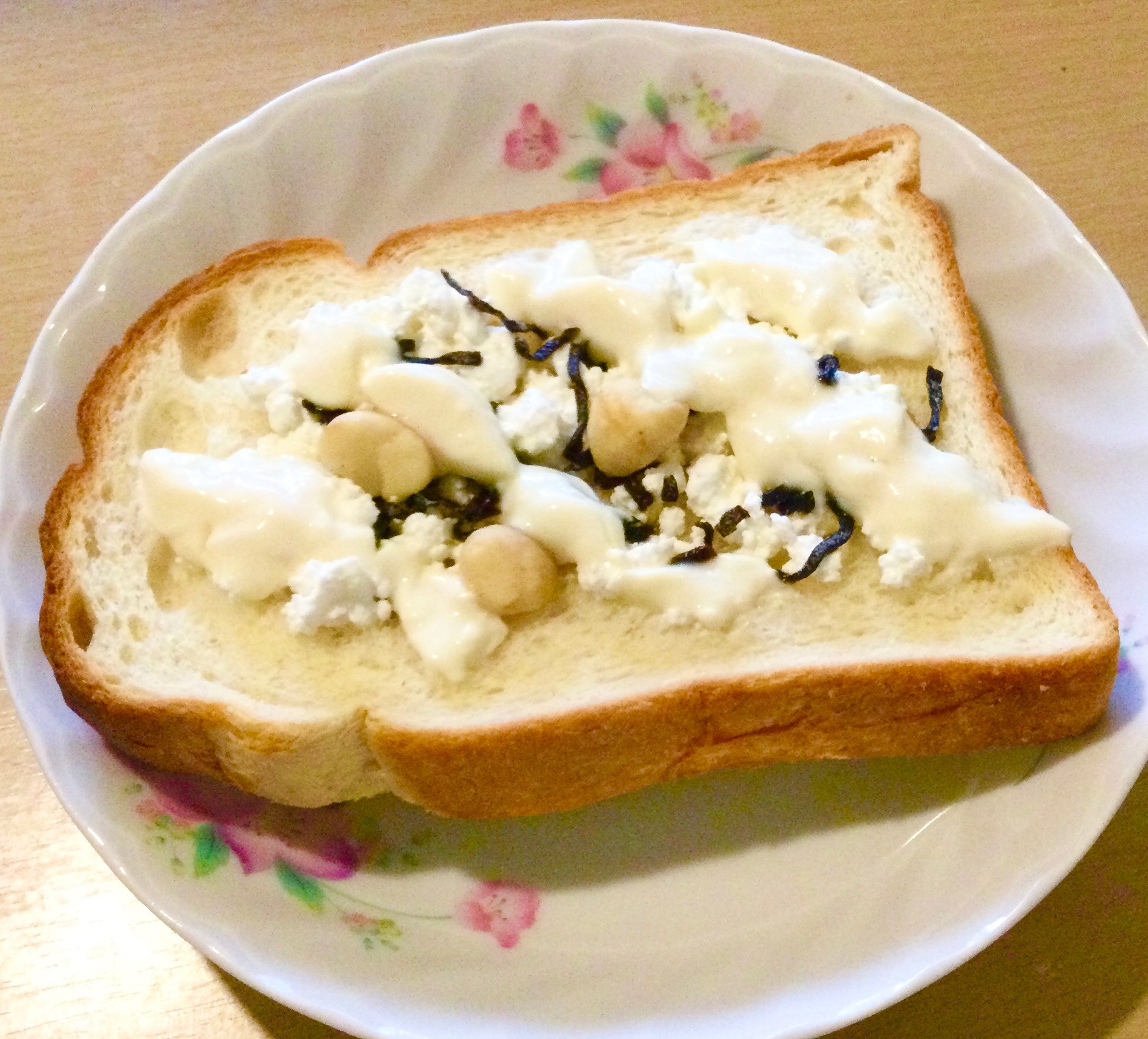 レシピタイトル:カッテージチーズ♪ナッツ♪ホットオープンサンド
