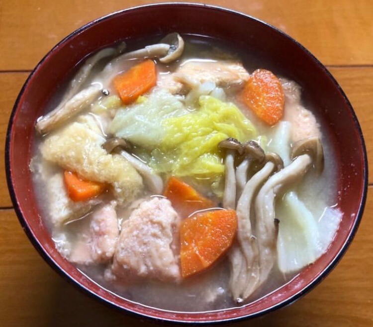:鮭缶入り具沢山味噌汁