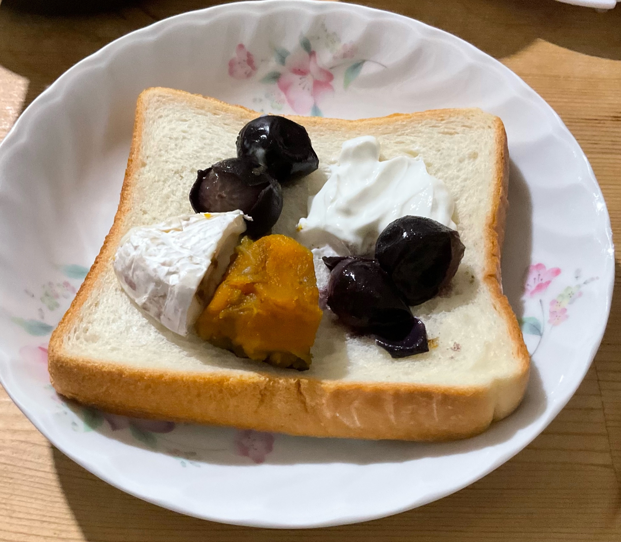 かぼちゃぶどうチーズヨーグルトオープンサンド♪