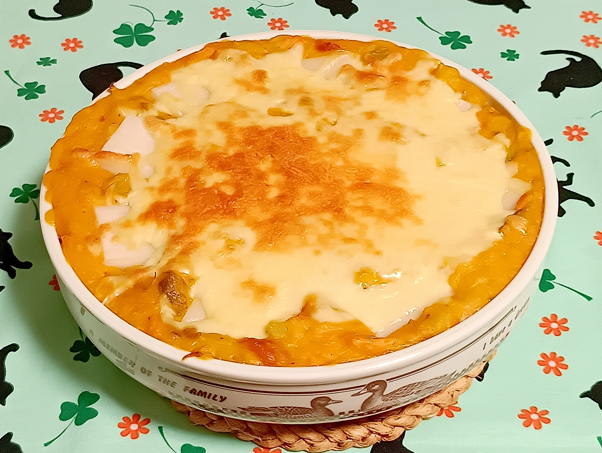 南瓜と鮭と国産チーズのもっち~ずグラタン
