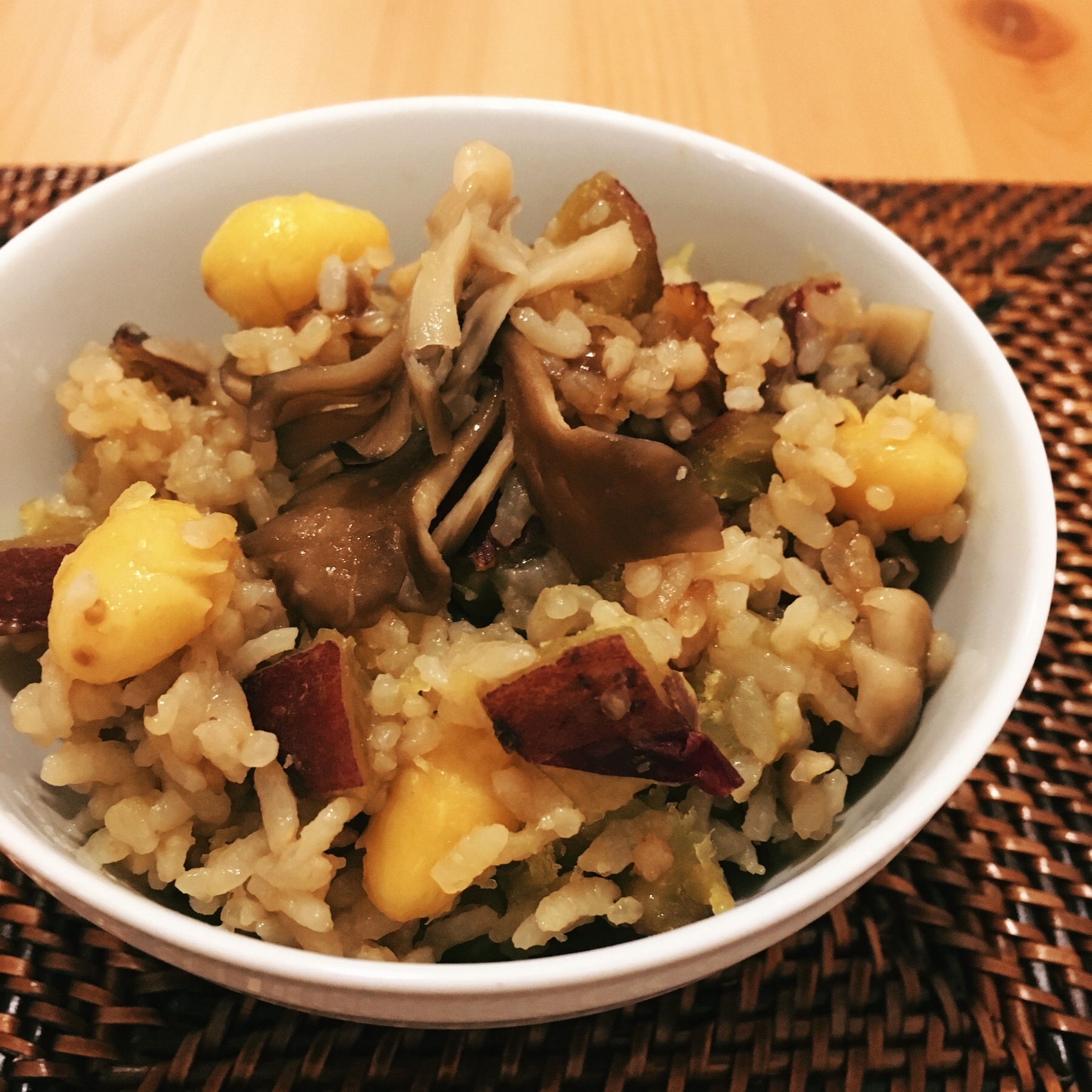 :秋 サツマイモ、銀杏と舞茸の炊き込みご飯
