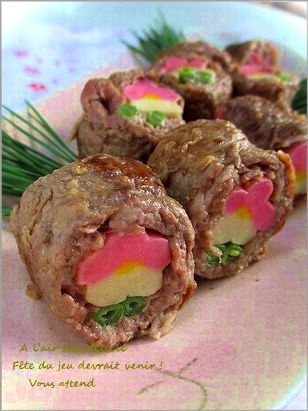 レシピタイトル:梅の花が咲いた可愛い八幡巻き